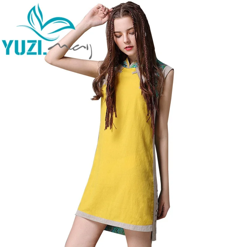 Mandarino Vestito Senza Cheongsam Yellow Di Maniche Colletto Dalle